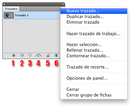 • Hacer trazado de trabajo. Convierte una selección en trazados. El ícono 4 ubicado debajo del panel es un atajo de esta función.