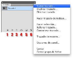 El panel Trazados, que se muestra en la figura 5, tiene un menú de opciones que se despliega en el triángulo de arriba a la derecha. Las opciones de este panel son:
